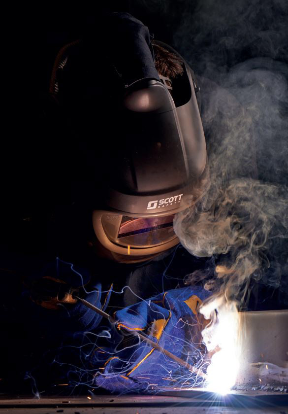 The Scott Safety FH4 Welding mask was designed to bridge a gap in the client's portfolio, offering a capable welding mask with built in airflow management, easily adjustable ergonomics and flip-screen capability to allow a user to work in hazardous metal working environments where metal sparks are a danger.